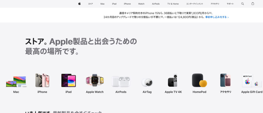 Apple Storeはオンラインのストアとほぼ同じ。
