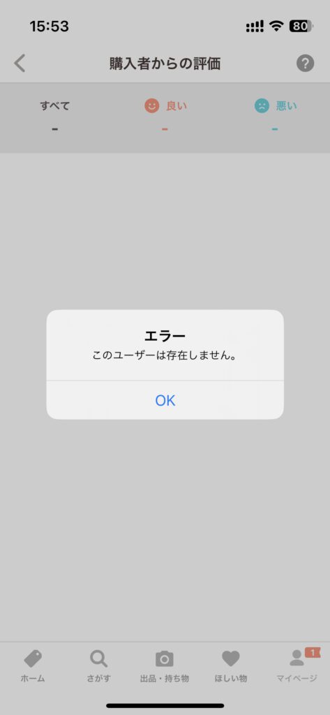 フリマアプリで出品者を確認したらこれ。