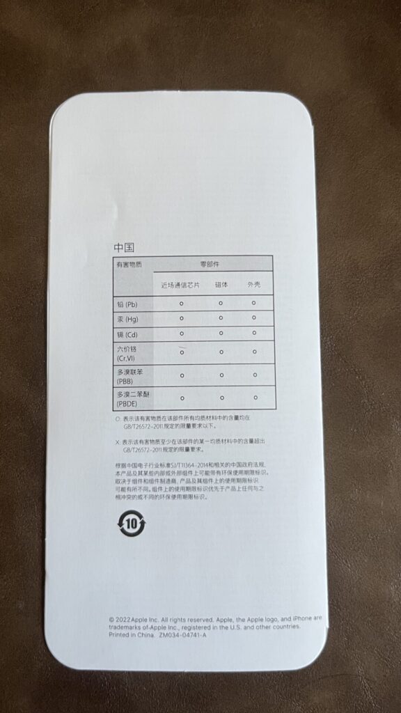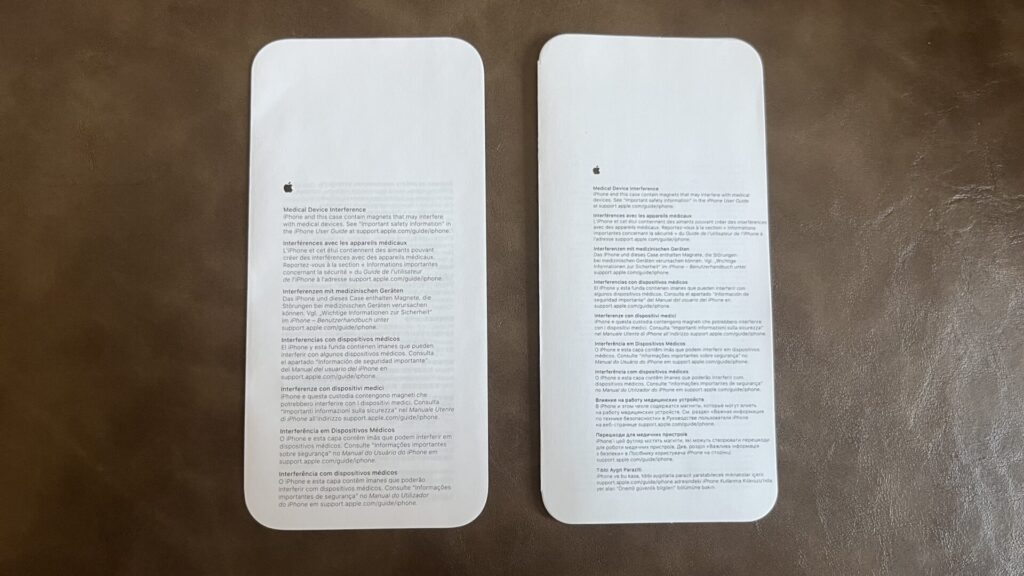 レザーの説明とMagSafeの跡の説明の紙。