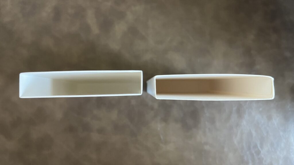本物はしっかり直線の四角なのに偽物はなんかガバガバしてて隙間があいてる。