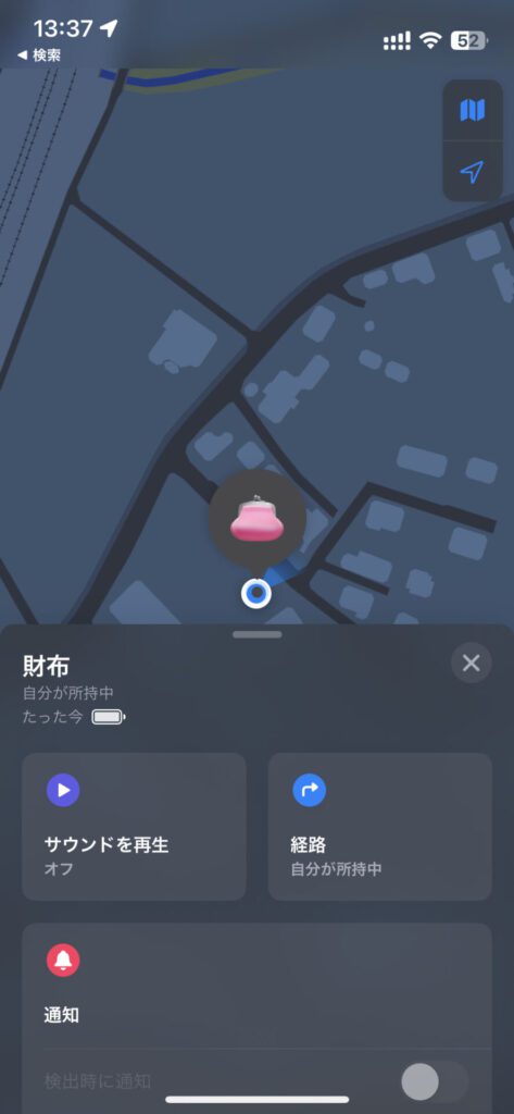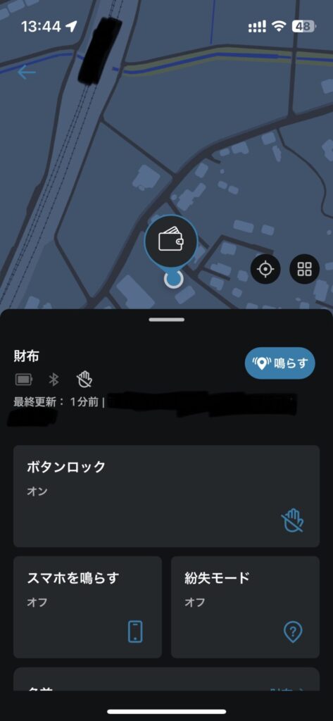 トラッカーからピコピコ音が流れて財布の場所がわかる。