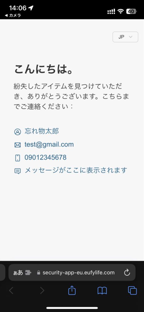 あらかじめEufyアプリで表示したい連絡先を登録しておく。