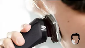 360度密着する360-Dフレックスヘッドが顔の凹凸にぴったりフィットして首回りやアゴ下も快適に剃れる。