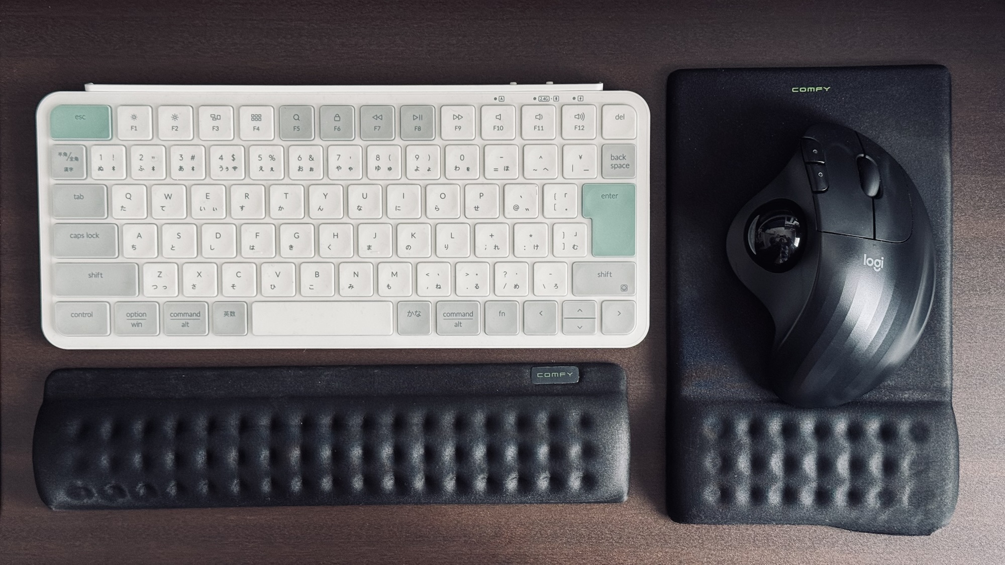 オレはトラックボールマウスを使ってるんだけど、トラックボールマウスを置いておく位置がKeychron B1 Proのすぐ右だとしっくりこない。